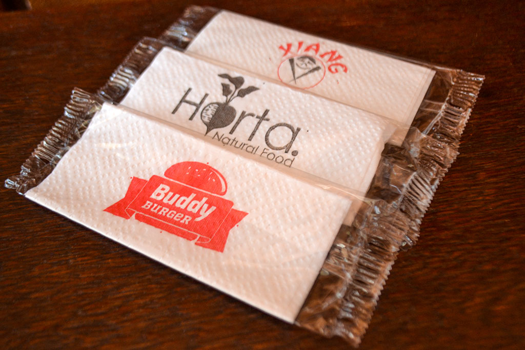 Guardanapo 22×21 com sachê de plástico (impressão no guardanapo até 2 cores)